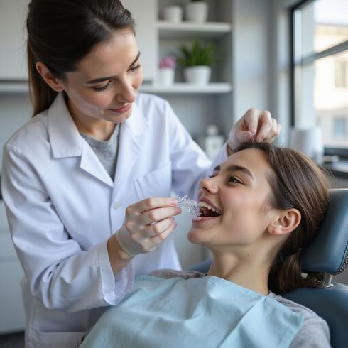 Aligner trasparenti e rimovibili per correggere l’allineamento dentale senza apparecchi visibili.